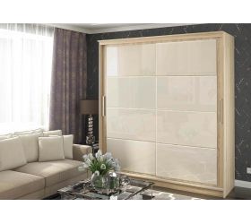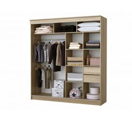Каркас вмещает 2 выдвижных ящика, штангу для одежды и много полок. Лакобель на створках подчеркнет ваш изысканный вкус при выборе мебели.