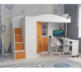 [name] => Кровать-чердак Юниор-4 Белое дерево/Оранжевый